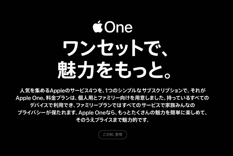 2020年9月16日(日本時間)、Appleはスペシャルイベントにて新サービス「Apple One」を発表致しました。